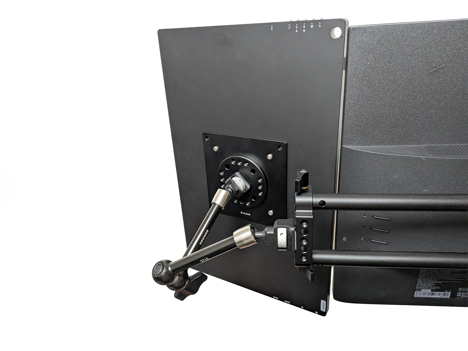 -本製品は室内での使用を前提に設計されています。本製品の使用によって生じた直接又は間接的な傷・損害・故障については弊所はその責任を負わないものとします。製品の製造工程において微細な擦り傷・塗装ムラが生じる場合がありますので予めご了承ください。本製品や組み合わせる製品に強い衝撃・過剰なトルク・持続的な振動を加えないで下さい。誤飲防止のためお子様の近くにネジなどの細かい物品を置かないようご注意ください。定期的に緩みやガタツキが無いかを確認し、ネジを締め直すなどのメンテナンスを行うようにしてください。保証期間は商品のお届け日から1年間となります。保証期間内において、正常なご使用によって自然発生した故障または破損は、無償で商品交換をいたします。使用上支障がなく補修・除去可能なものなどの軽微な傷やスレは保証範囲に含まれません。製品の特性上、不安定な構造へ無理にマウントを行うことなどにより発生した機材の破損は弊所では責任を負いかねますので予めご了承ください。本製品の片側にマウント荷重が集中するとモニターアームの水平回転(ビポット)により傾くことがございます。マウントを行う際は左右の重量が均等になるよう意識して配置することをはじめ、カウンターウェイトなどを用いて調整するか、水平回転を固定する機能のあるモニターアームをご使用ください。